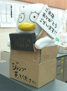 その段ボール箱には「ジャンプ買ってください」と書いてある。