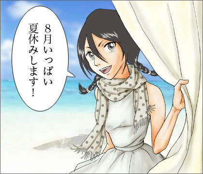 じつはこれ、となりに一護を描こうと思ってたんですが時間切れ。この週末から実家に帰省します。続きは帰ってきてから描きます。でもって、それって9月だったりするんですがね。(汗)