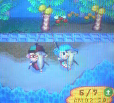 通信中はレア魚の出現率が高くなるって教えてもらったので、Gさんと真夜中の釣り大会です。(真夜中ってトコ強調ですよ!おかげで、今日は使いモンにならへんかったわ)