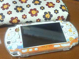 軽量薄型になった新型PSPが羨ましいので、LocoRocoのドレスアップステッカーを貼ってみたら…。あらっ、思ってたより可愛いじゃないの。ふふふっ。